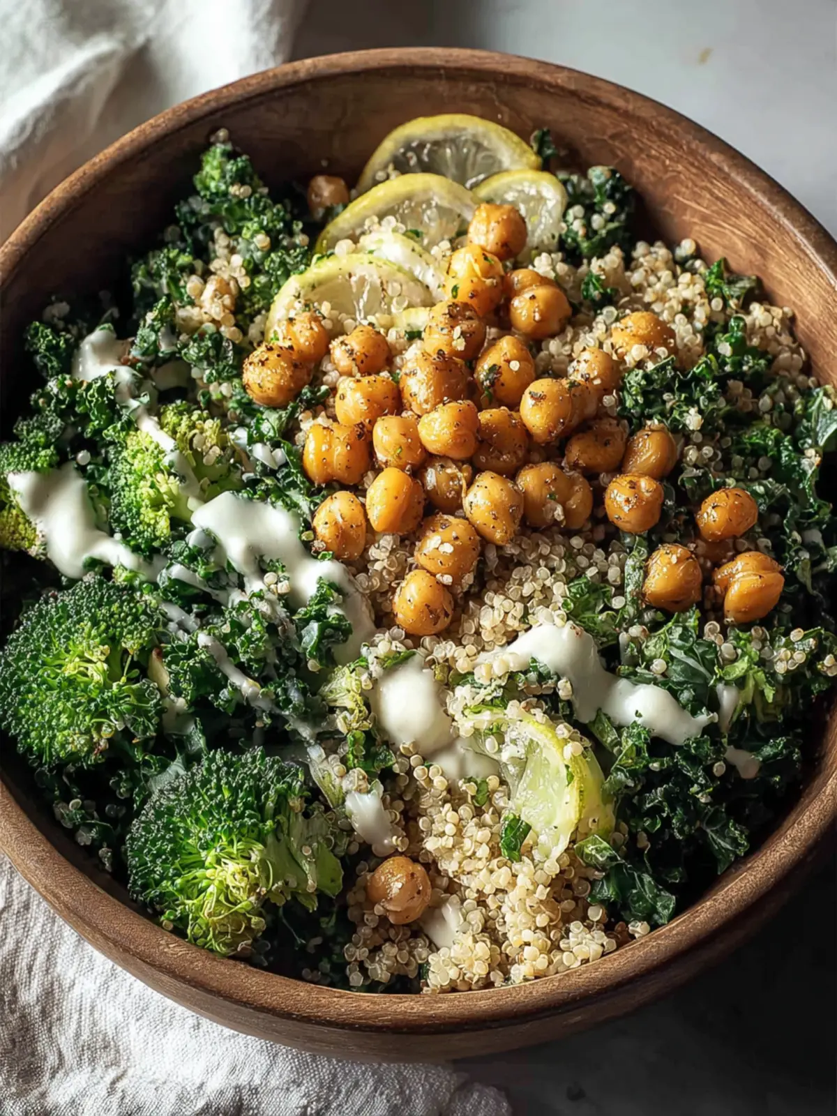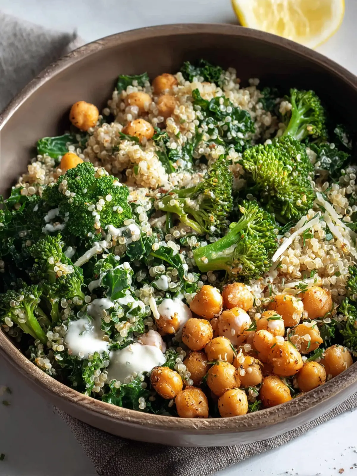Introduction to Easy Kale Chickpea Quinoa Salad with Broccoli & Lemon