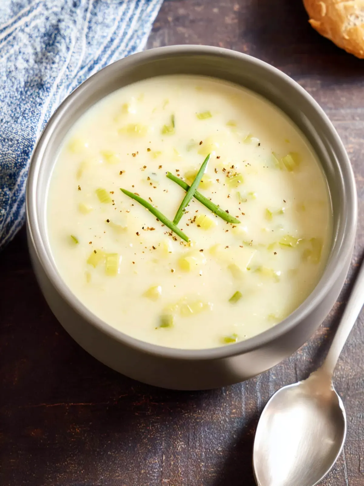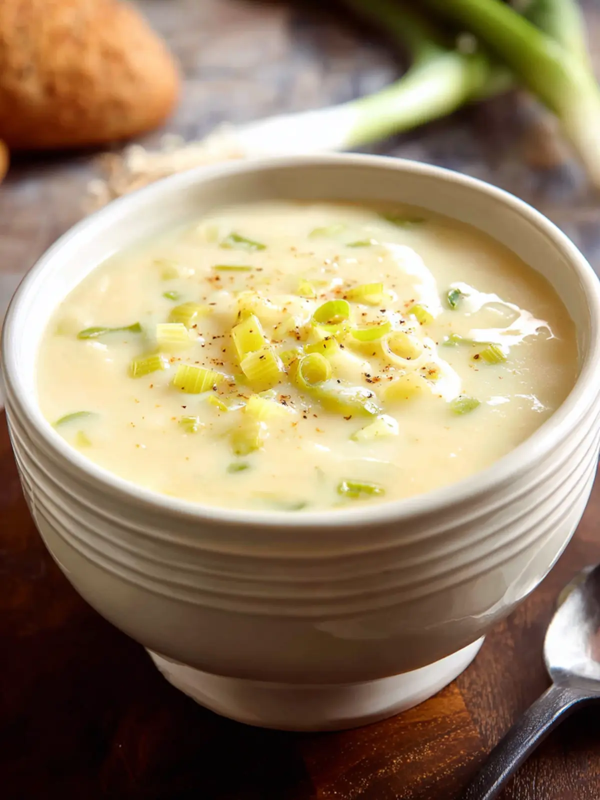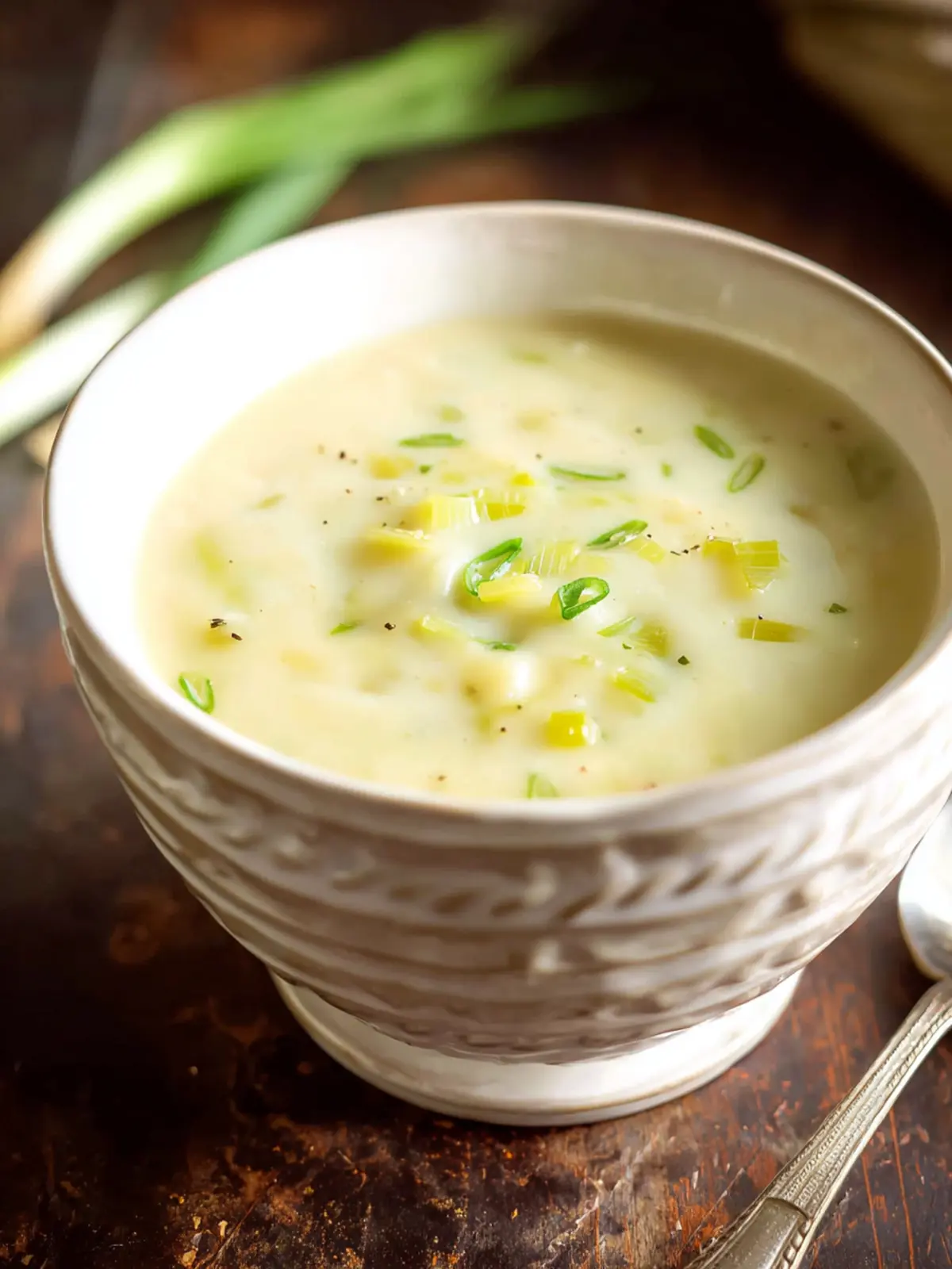 A creamy leek and potato soup that is both comforting and delicious.