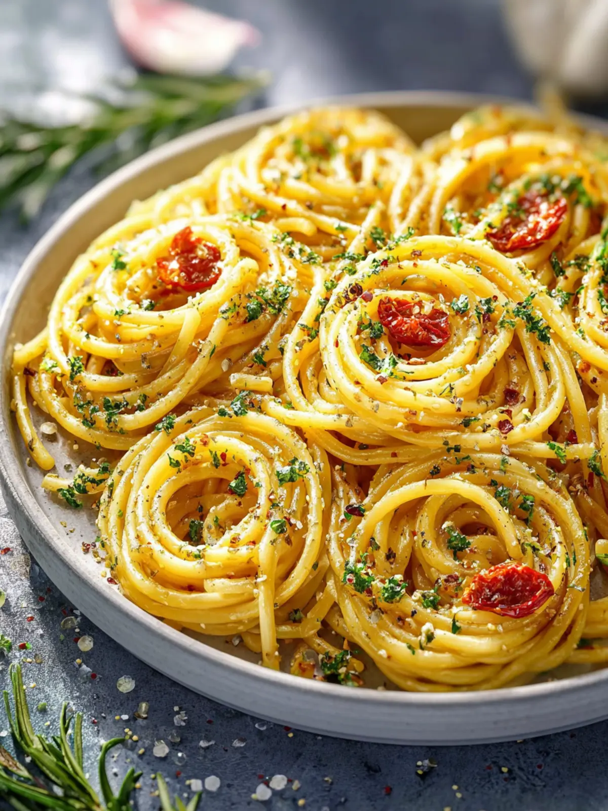 Garlic olive oil pasta brings bursts of flavor to your dinner table, and the key to its deliciousness lies in its simple yet flavorful ingredients. Each element adds depth and warmth to this comforting dish.