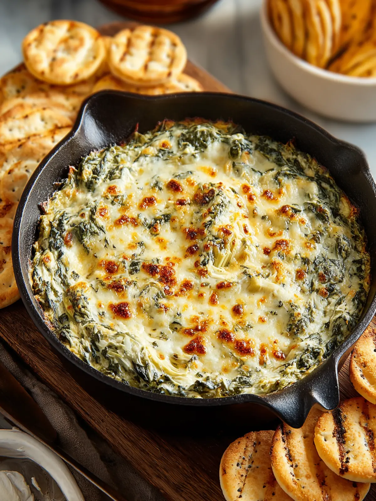 A creamy and cheesy spinach artichoke dip perfect for parties and gatherings.