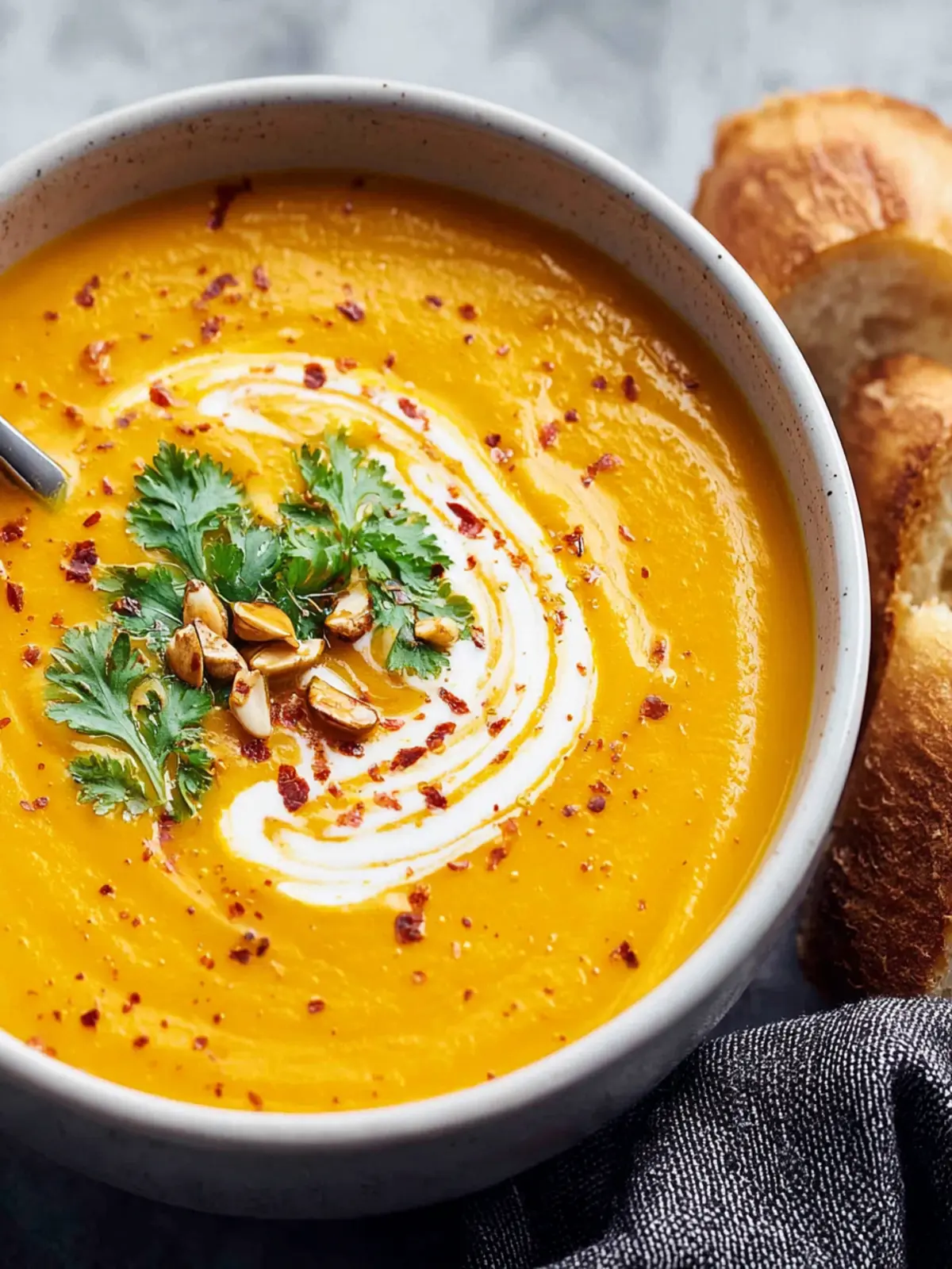 Spicy Garnish: Chopped fresh cilantro or parsley can add a refreshing note, while a sprinkle of chili flakes can introduce a subtle heat that contrasts the soup’s sweetness perfectly.