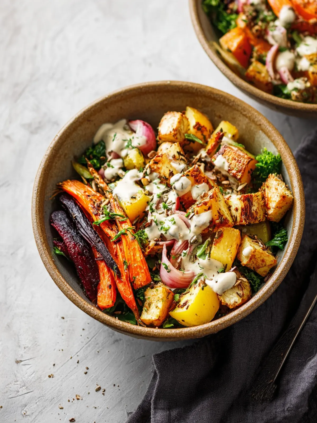 Roasted Root Vegetable Bowls: The Best Tahini Dressing Delight