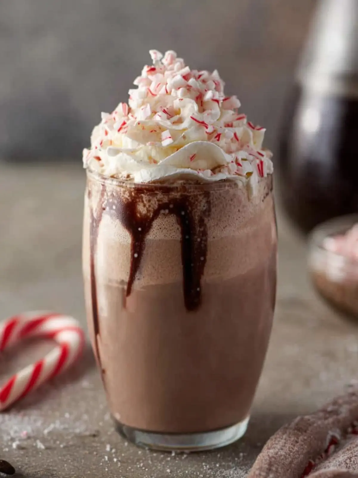 3. Pour the drink into a tall cup, add whipped cream on top, chocolate sauce, candy canes, or whatever you decide to top your drink with, and enjoy!