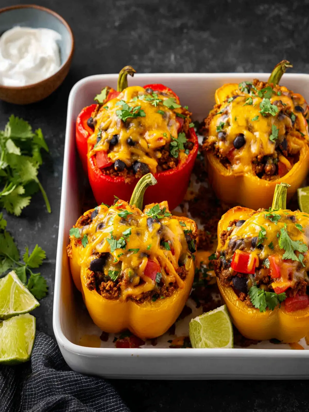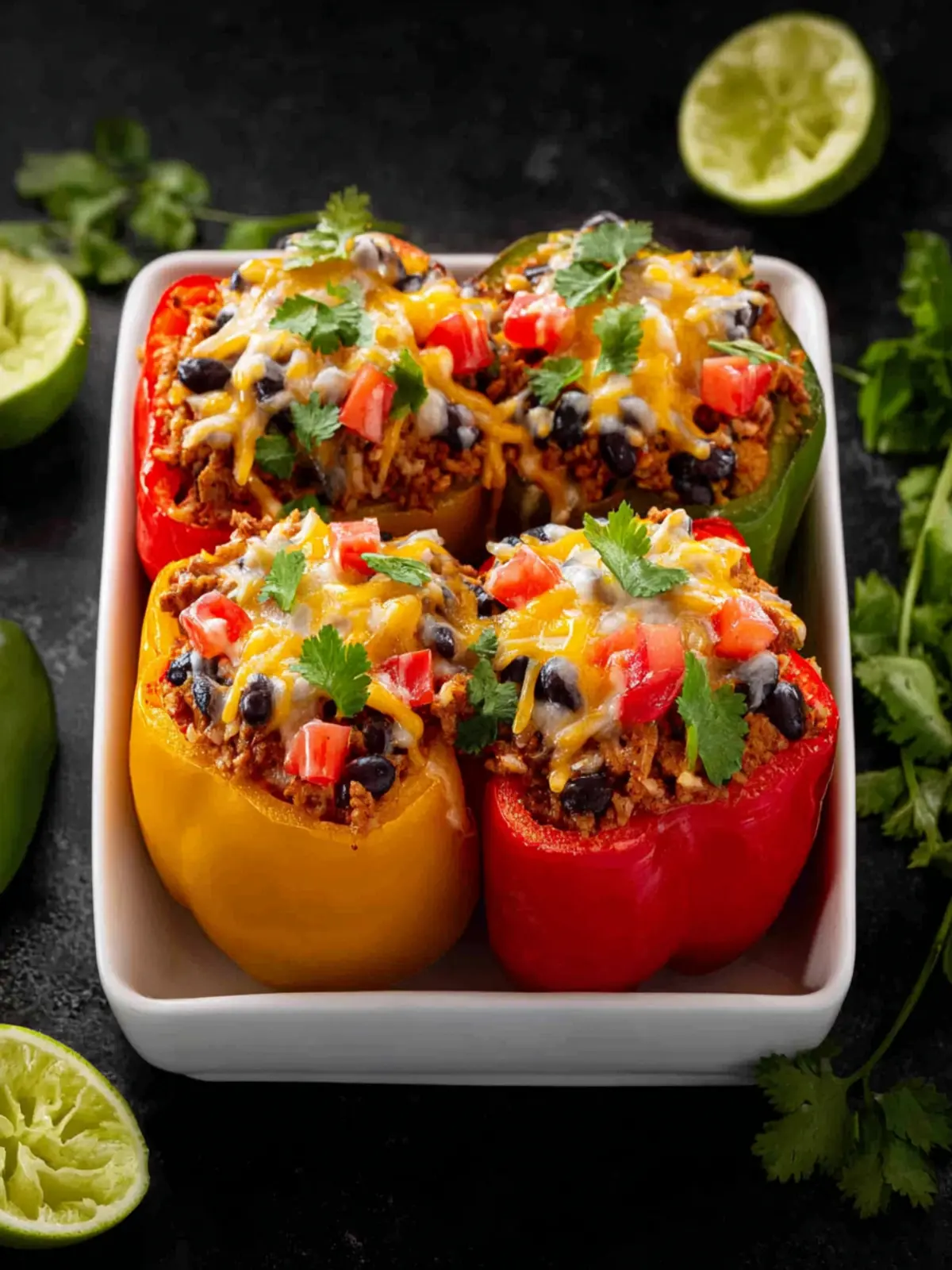 From start to finish, you’re looking at around 45-50 minutes for your taco stuffed peppers. In under an hour, you’ll have a vibrant, mouthwatering meal ready to enjoy. Perfect for a busy weeknight!